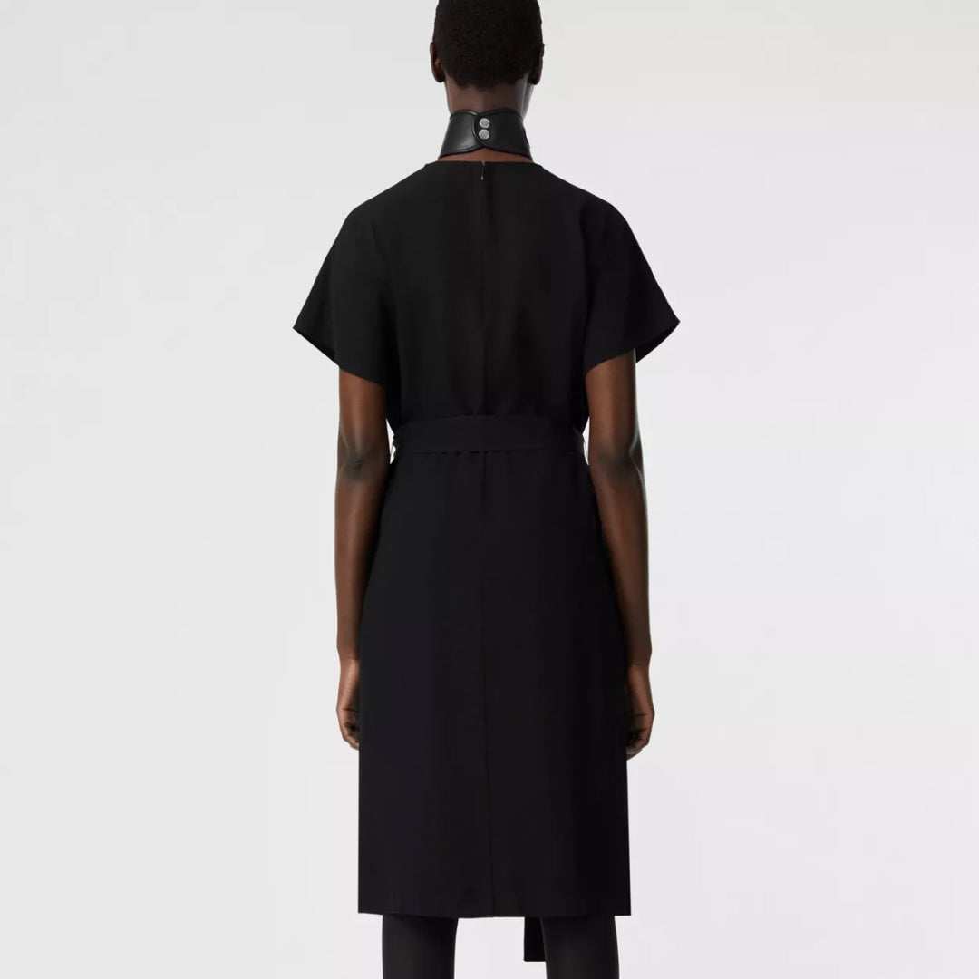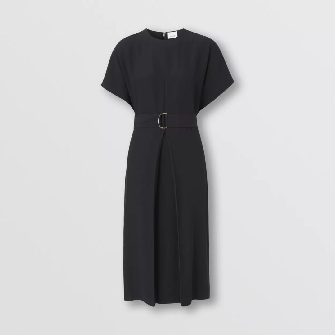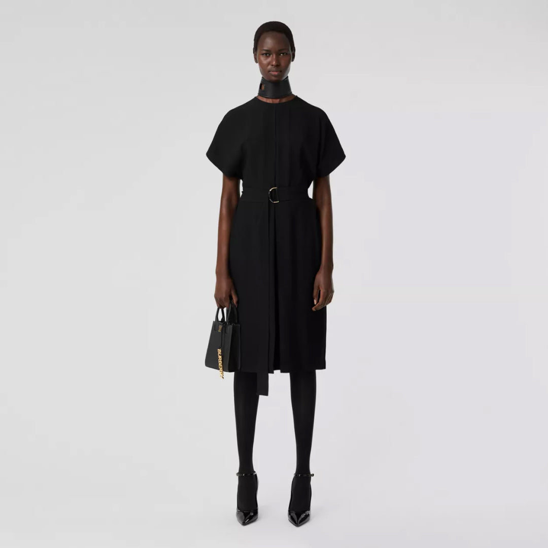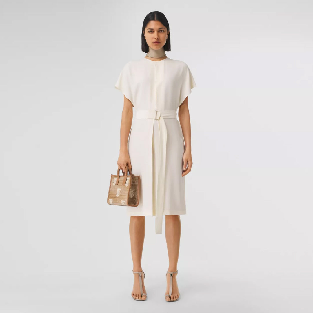 A cape-sleeved dress cut from Italian satin. Cinch the waist with the self-tie D-ring belt.