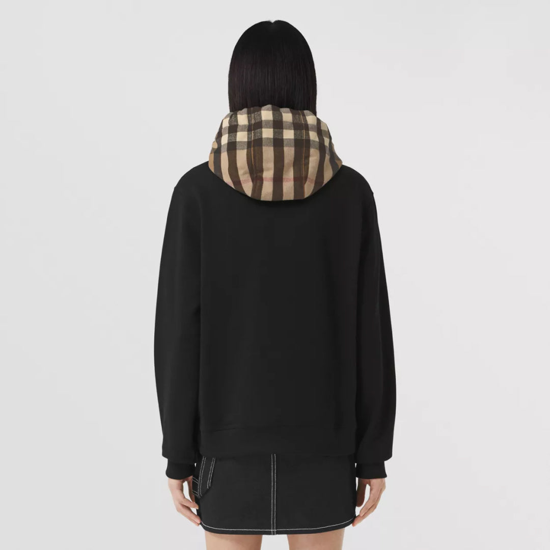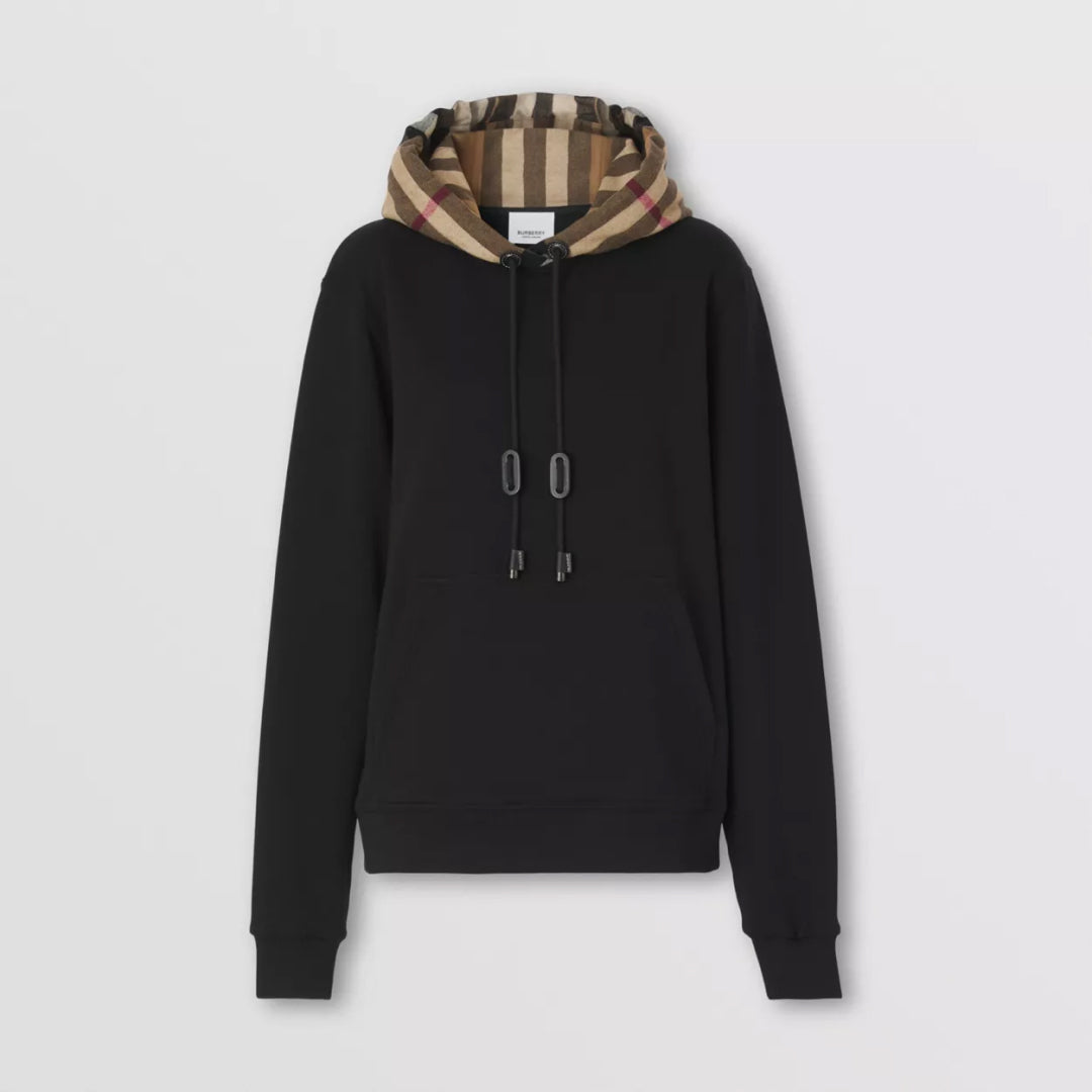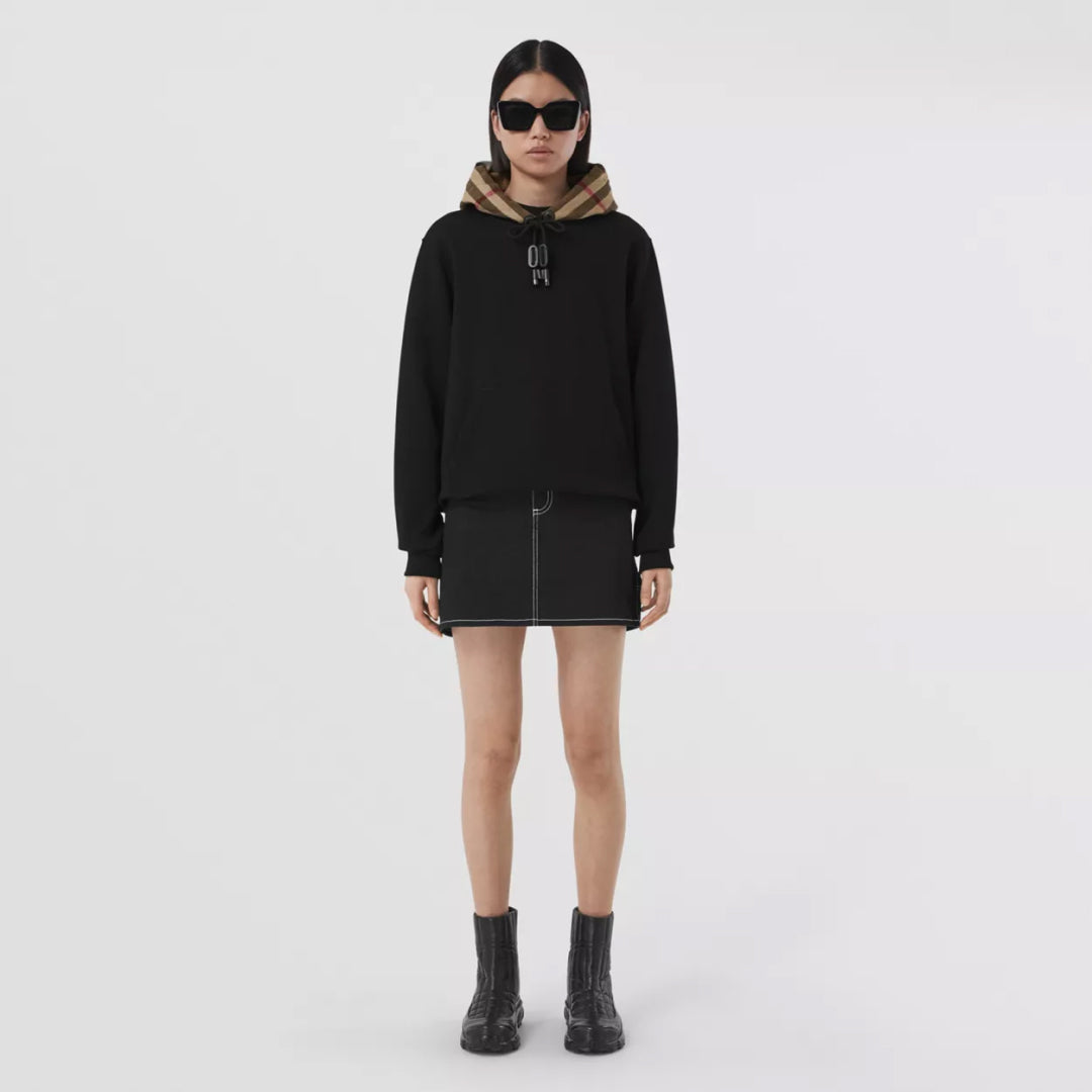 An oversized hoodie in loop-back cotton, styled with a drawcord hood in our signature check.