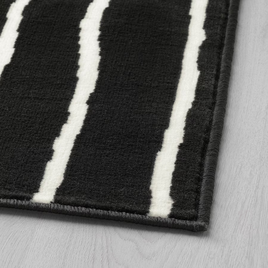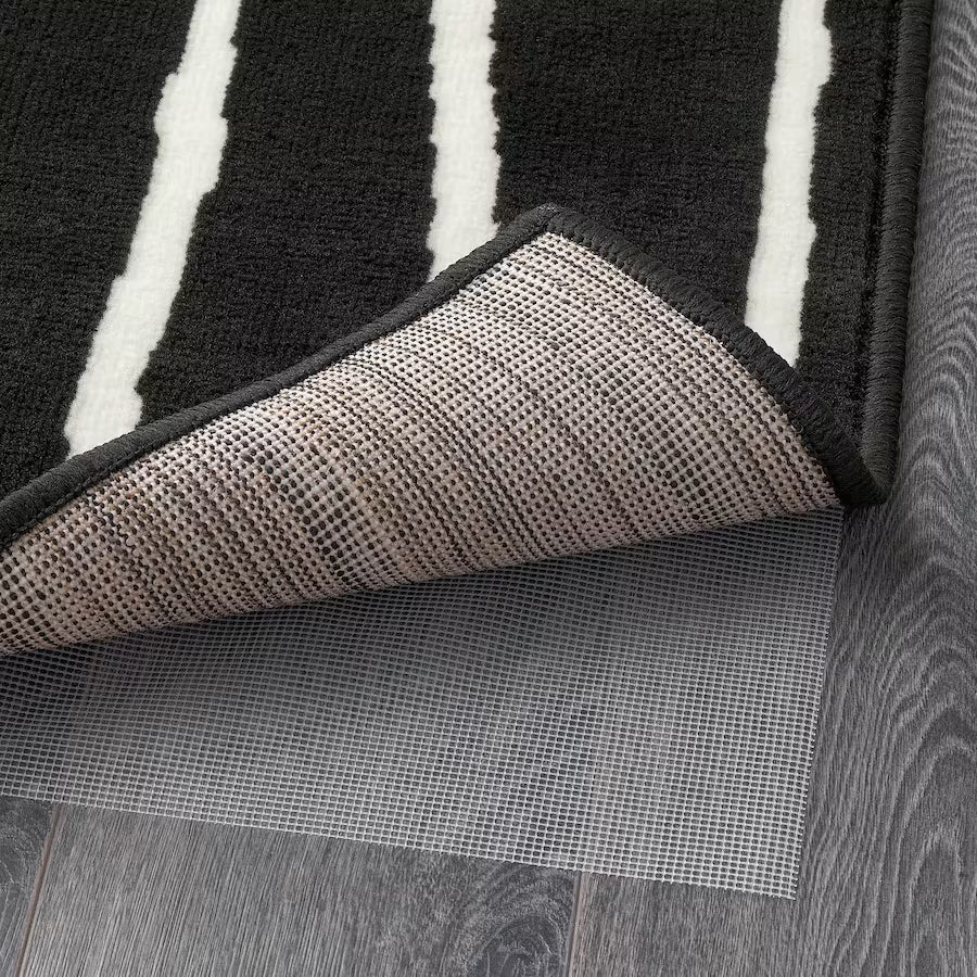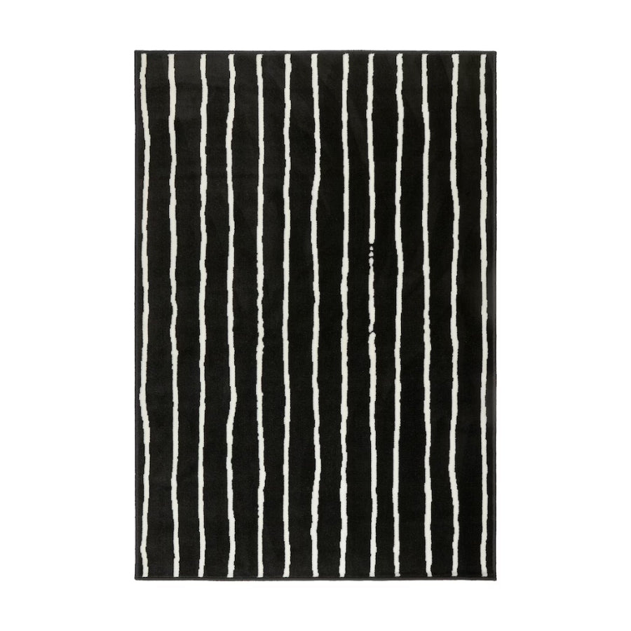 Irregular white stripes on a black background bring a fresh look whether it is in the living room or teen’s room. Stains and dirt won’t hurt since the low pile is durable and easy to clean.