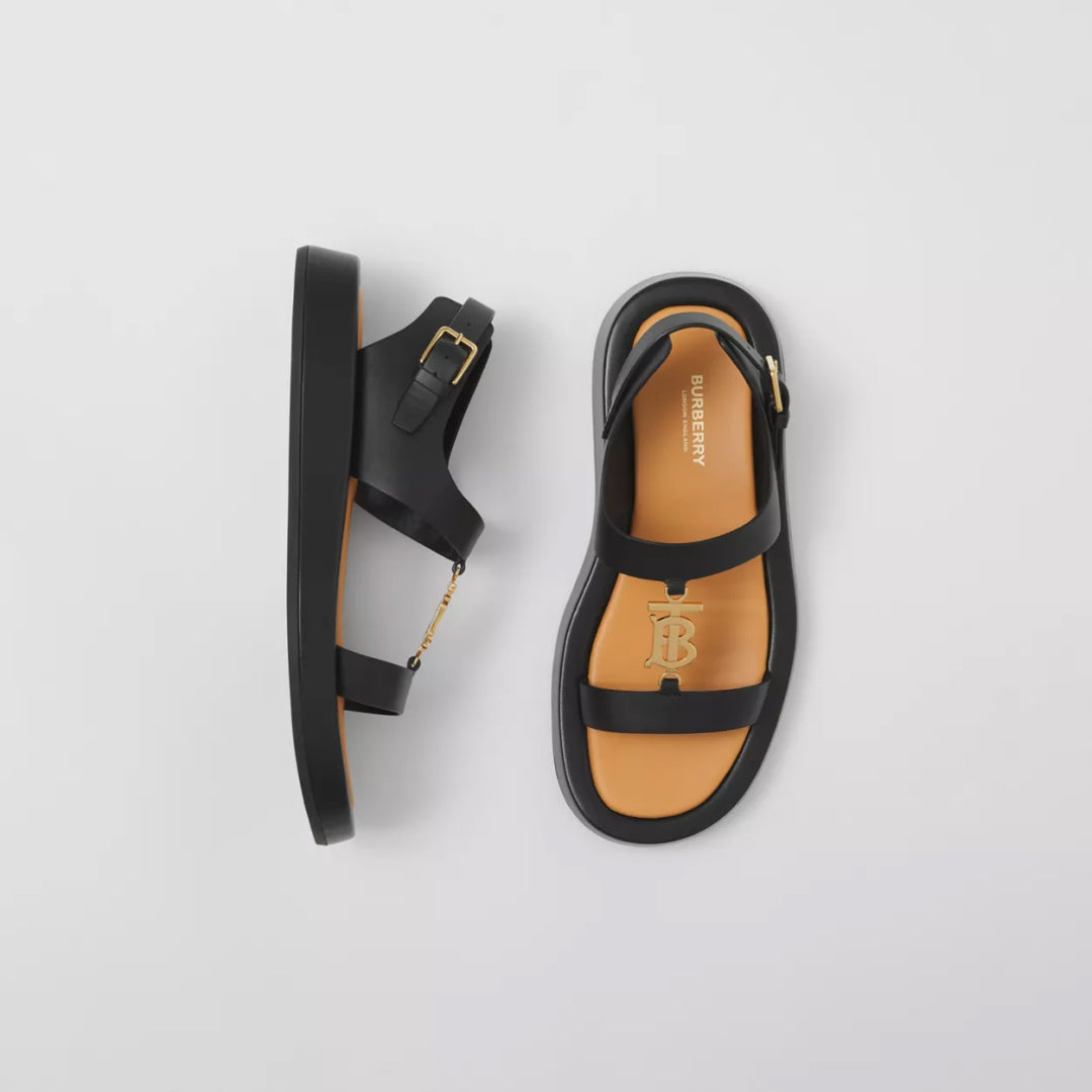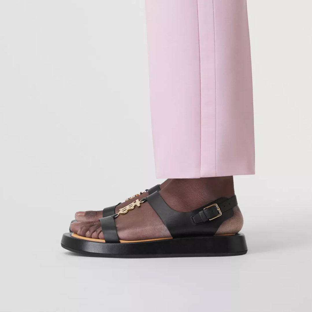 Italian-made sandals in smooth leather, detailed with a gold-plated Monogram motif. The design is set on a chunky platform sole.