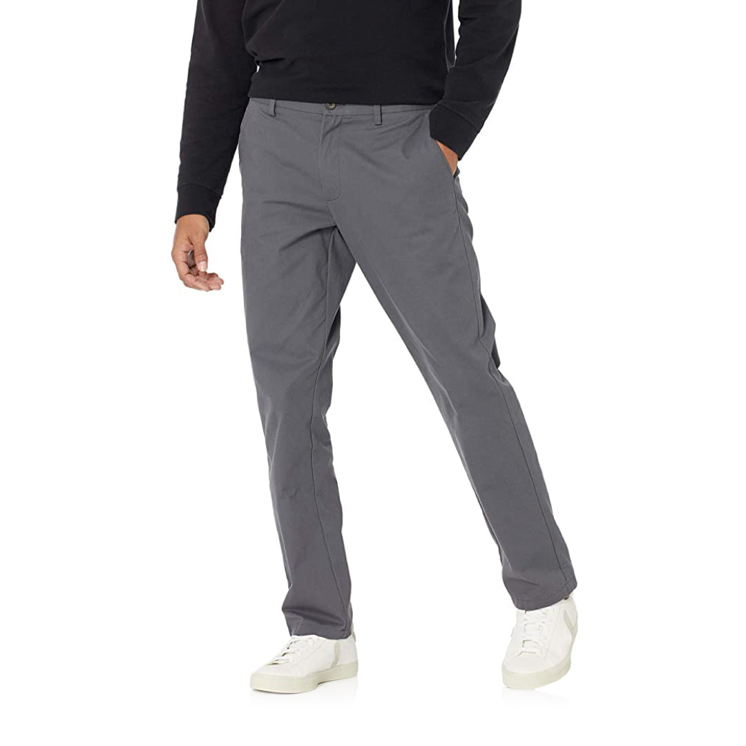 This slim-fit chino pant features wrinkle-free fabric, a flat-front design, and button-through back welt pockets for a tailored look and all-day comfort;
