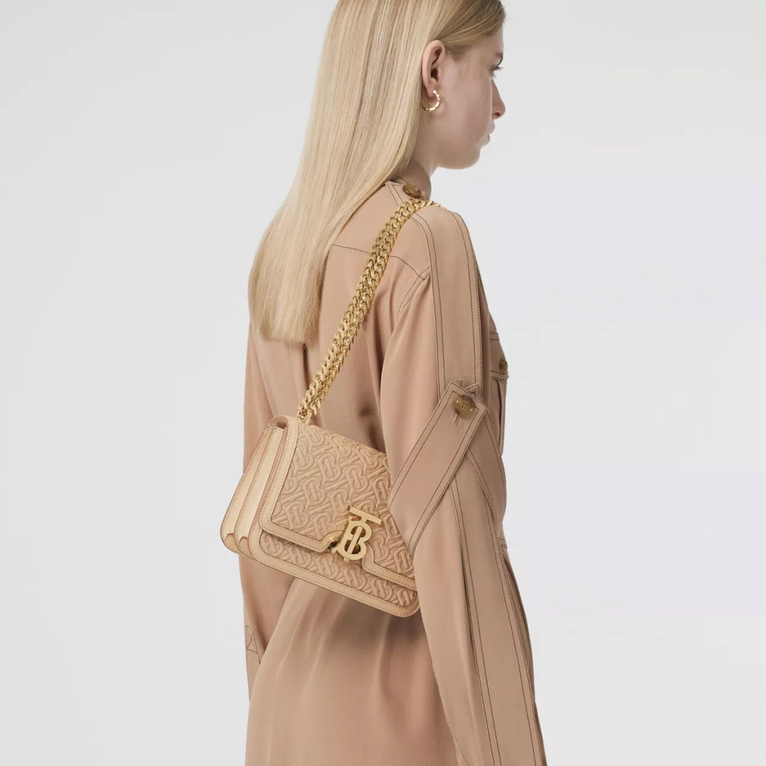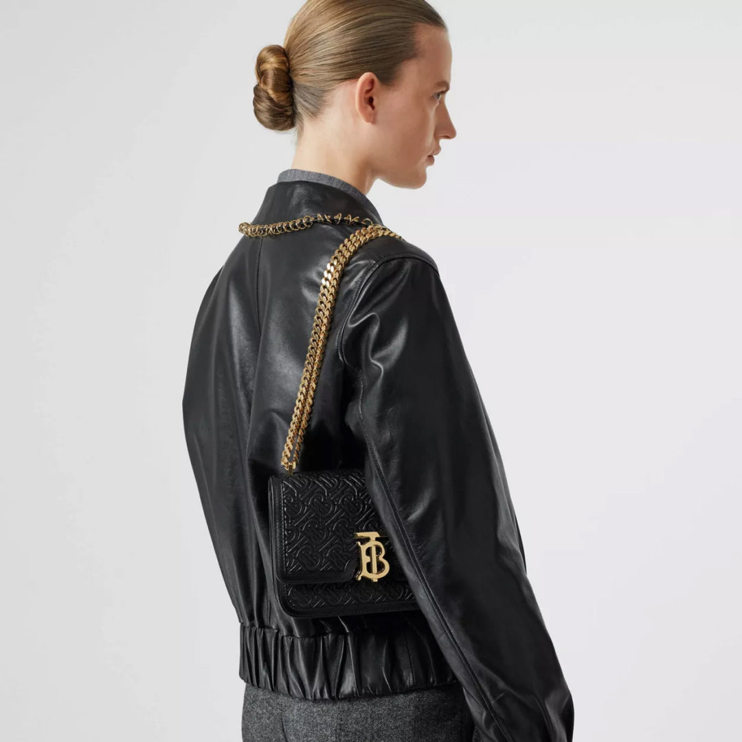 A structured bag in quilted Monogram lambskin with a Thomas Burberry Monogram clasp. Wear it on the shoulder or adjust the strap to style as a crossbody.