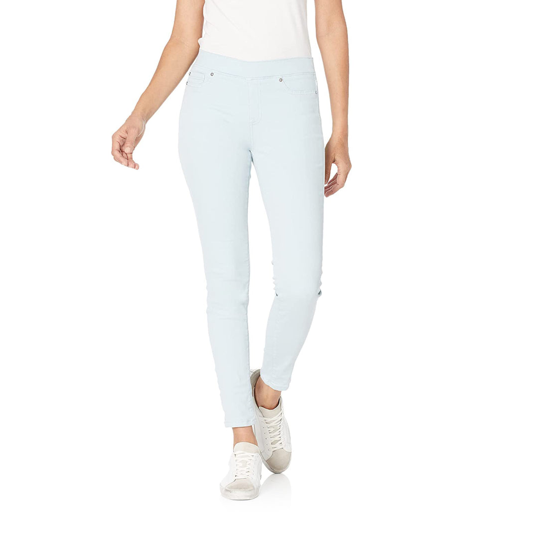 Shaped from smooth, stretch fabric, this classic jegging flatters with a curve-hugging fit;