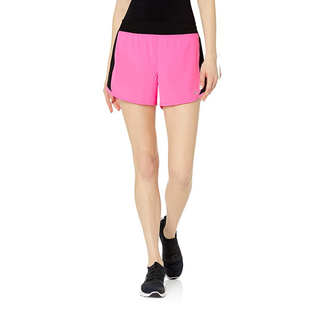These stretch woven running shorts feature side pockets and an internal drawcord;