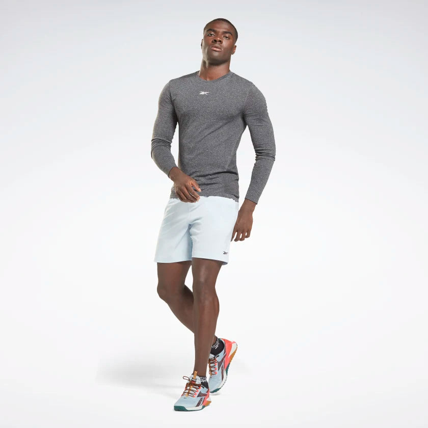 The MyoKnit fabric in this men's Reebok long sleeve shirt wicks sweat away from your body as you max out in the box. This piece has engineered mesh built in to keep you ventilated as you move from double-unders, to muscle-ups, to burpees and right back again.
