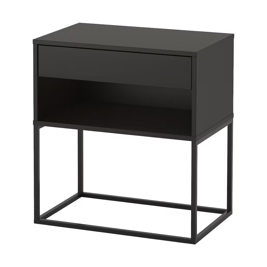 A clean, simple design that fits nicely next to high beds. If a good book has kept you up late, you can quietly tuck it away in one of the soft-closing drawers without waking anyone.