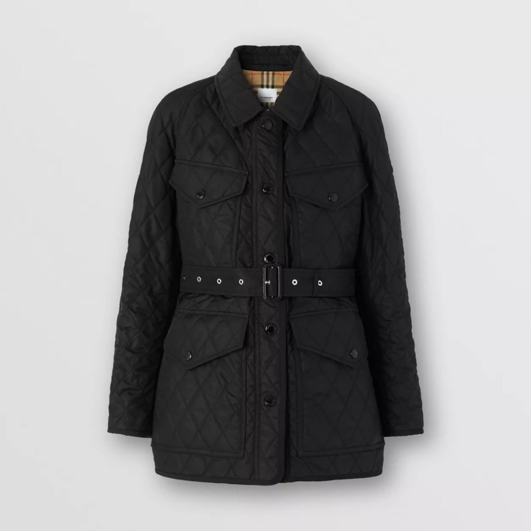A diamond-quilted field jacket cut from Italian-woven nylon canvas. The belted design is lined in our signature Vintage check and engineered with 37.5® thermoregulation technology to accelerate evaporation and breathability, so you never feel too hot or cold.