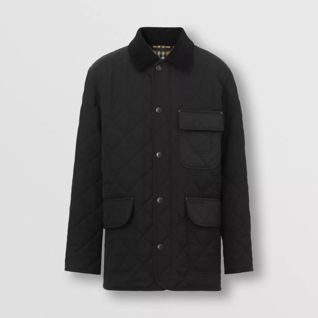 A diamond-quilted field jacket, highlighted with a corduroy collar and our embroidered logo. The relaxed design is lined in our archival Vintage check and engineered with 37.5® thermoregulation technology to accelerate evaporation and breathability, so you never feel too hot or cold.