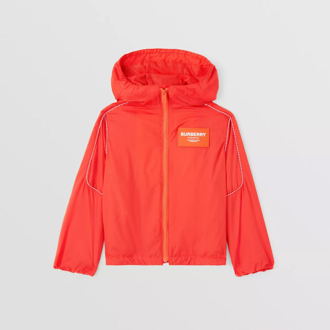 A lightweight hooded jacket in a technical blend, detailed with striped piping and our appliquéd Horseferry motif. The design is lined with breathable mesh.