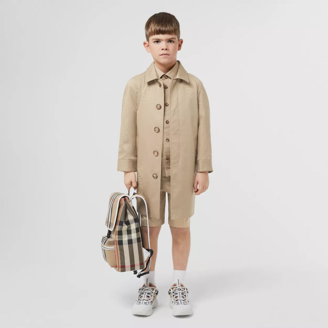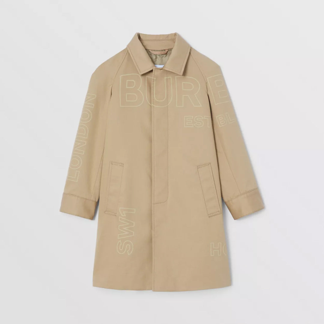 A raglan-sleeved car coat cut from cotton twill, updated with an outlined Horseferry print.
