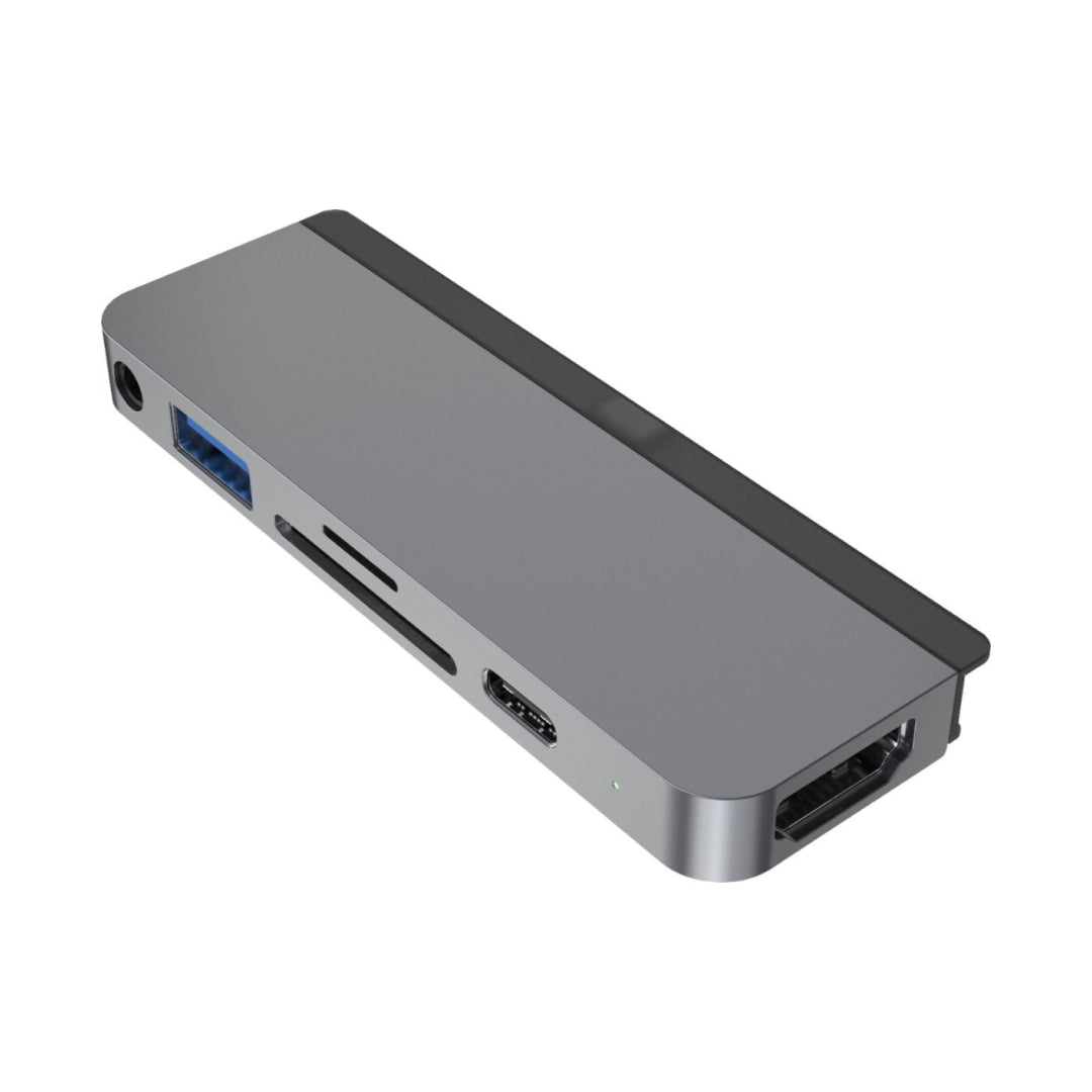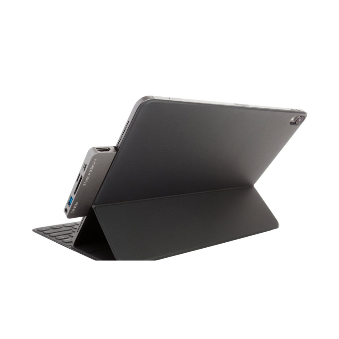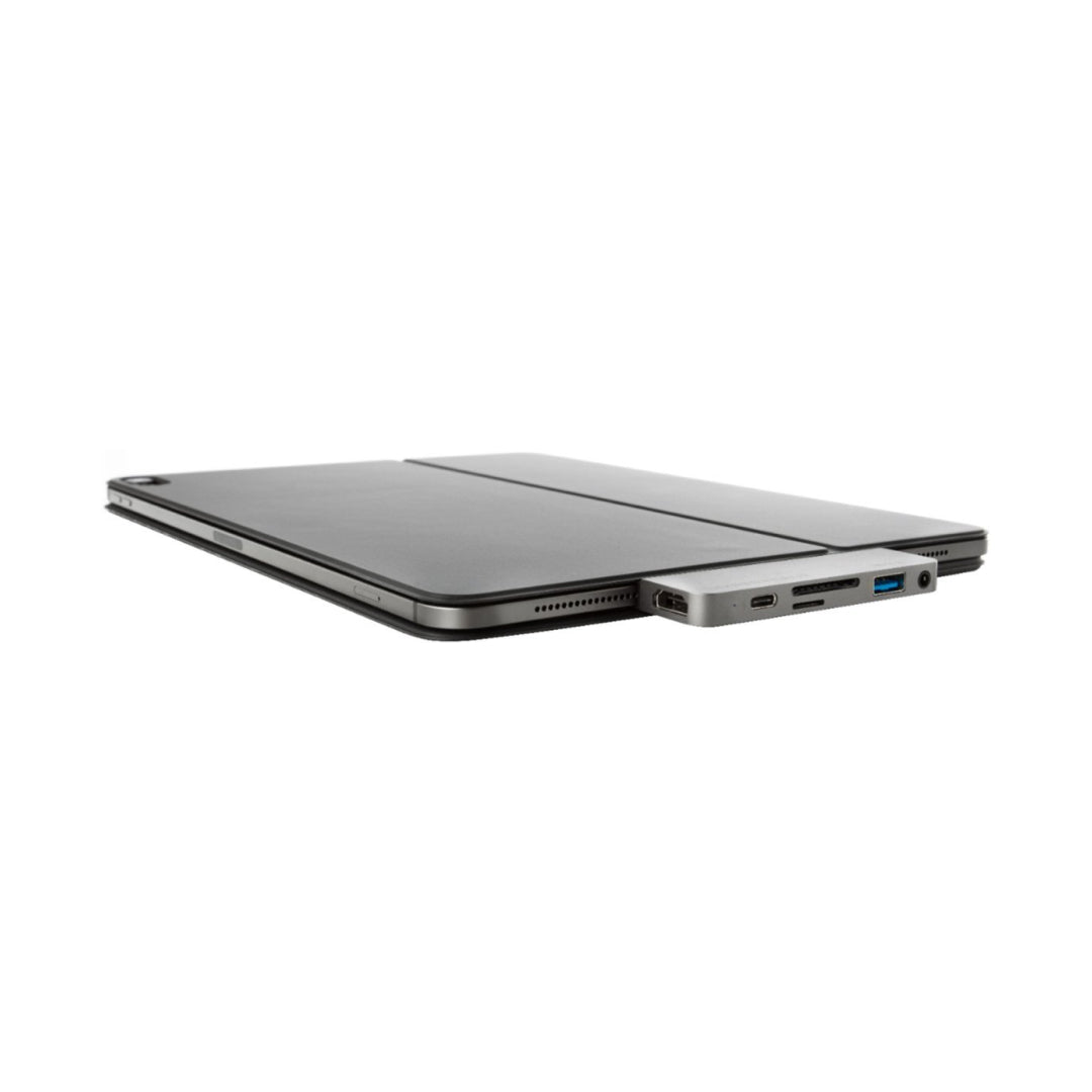 Features patented changeable grips that safely secure the hub onto 11" or 12.9" iPad Pro. The included extension cable allows the hub to work with most other USB-C devices.