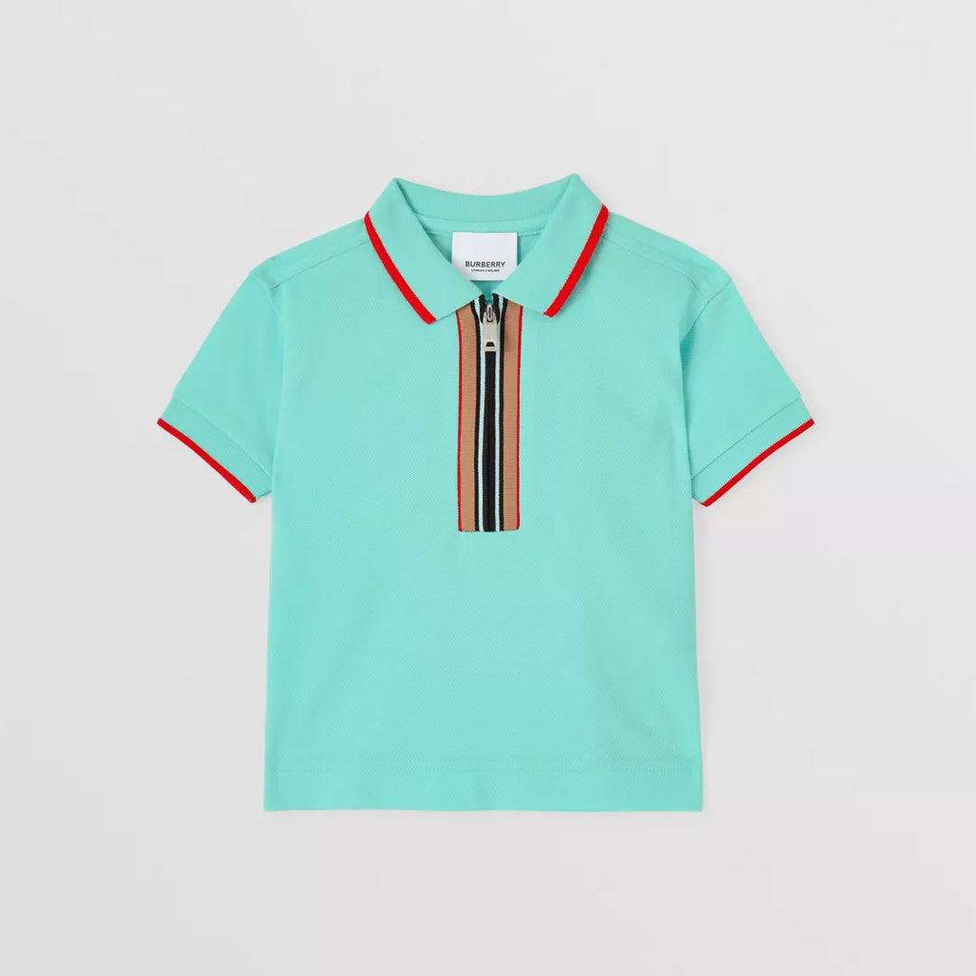 Icon Stripe Detail Cotton Zip-front Polo Shirt