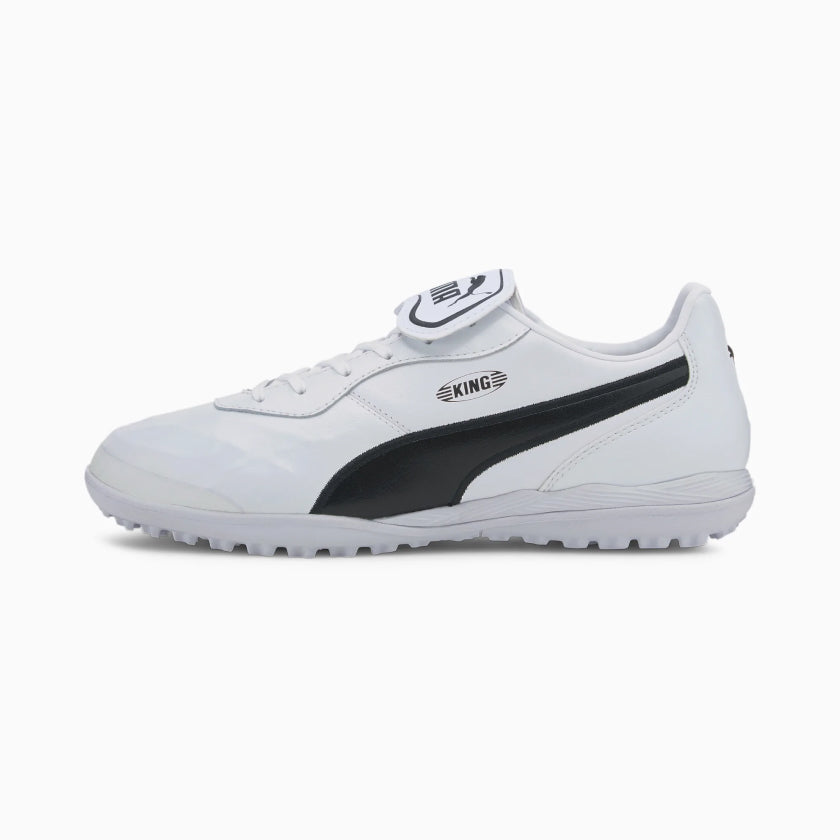 The PUMA King is soccer royalty. It’s been in the game since 1968 and has been worn by soccer legends from Pele to Matthaus. Originally engineered in Italy, the King Top features a sleek leather upper and soft padded collar with a fold-over tongue. The low-profile rubber outsole features strategically placed studs for versatile movement and traction on the field.