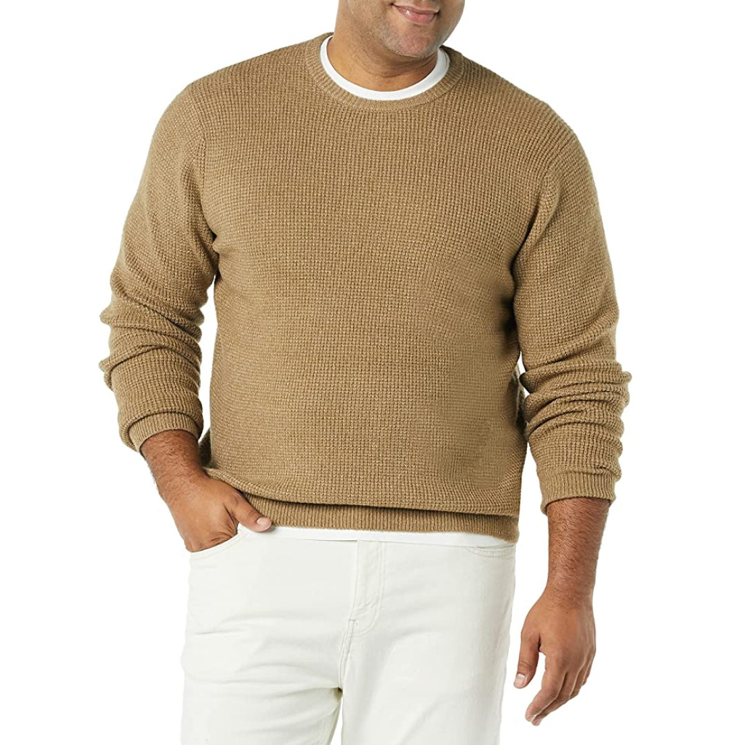 Long-Sleeve Soft Touch Waffle Stitch Crewneck Sweater