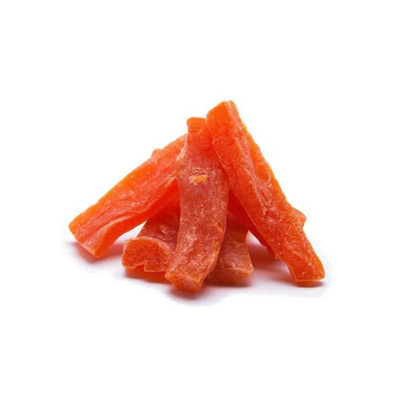 Candied papaya are pieces of ripe fruits of the melon tree (as papaya is called in another way), boiled in rich sugar syrup and dried. The percentage of moisture in the finished product is no more than 14% -16%.