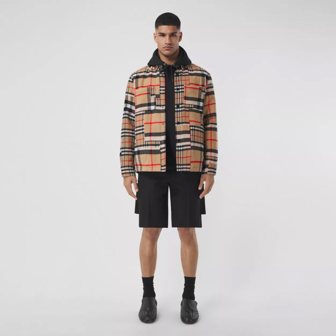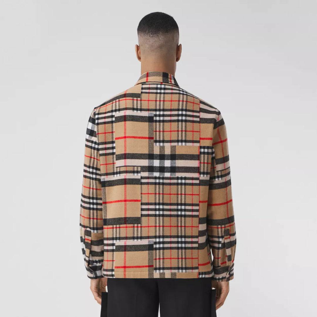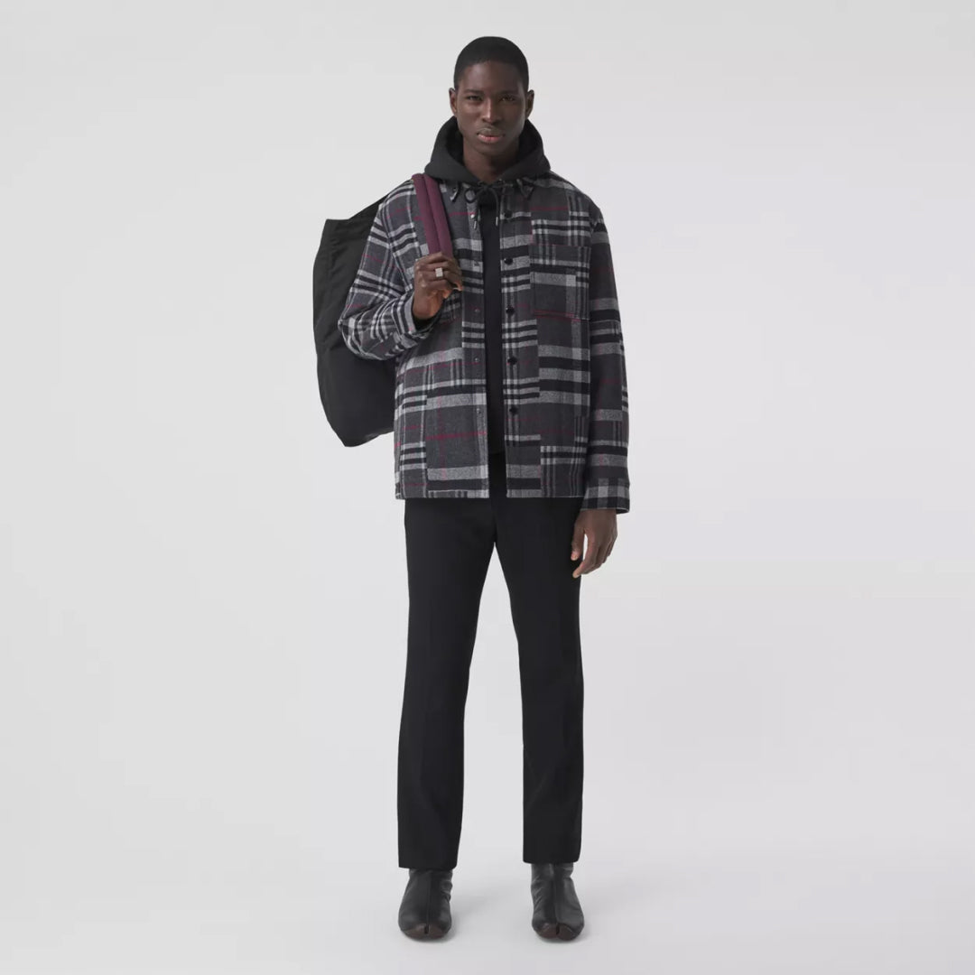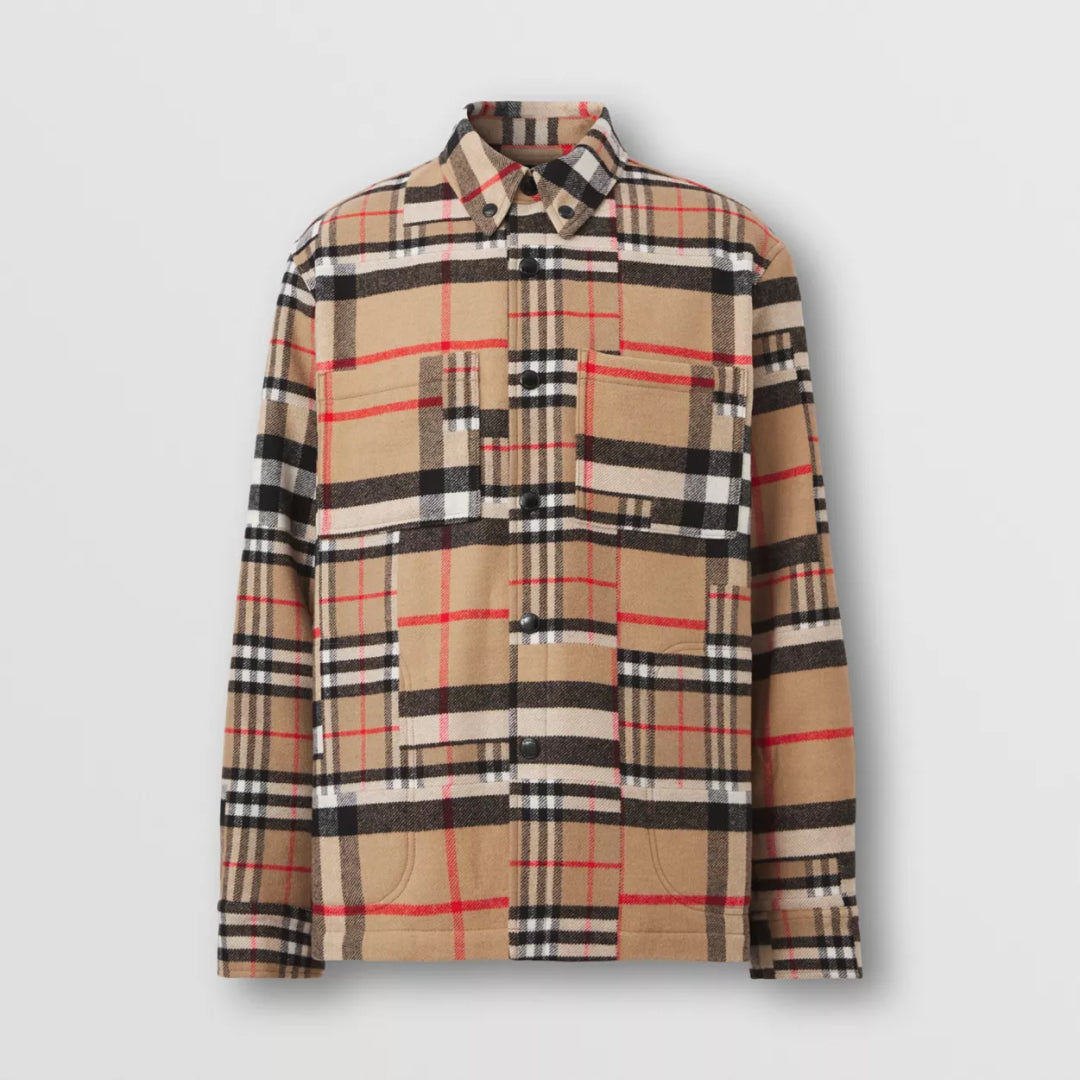 Patchwork Check Wool Oversized Overshirt