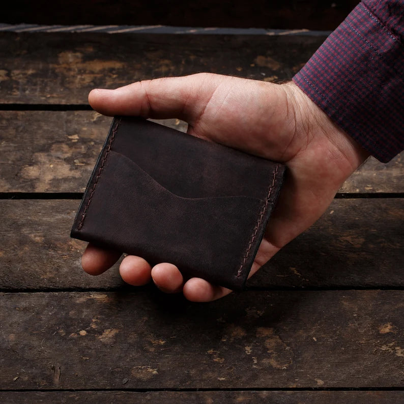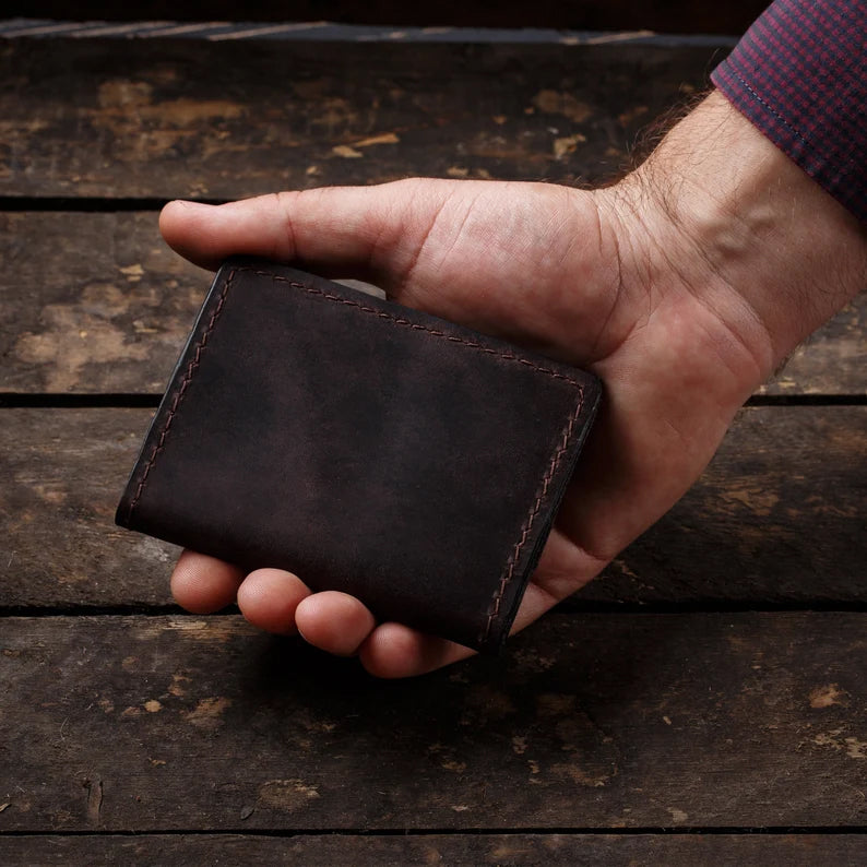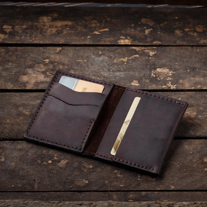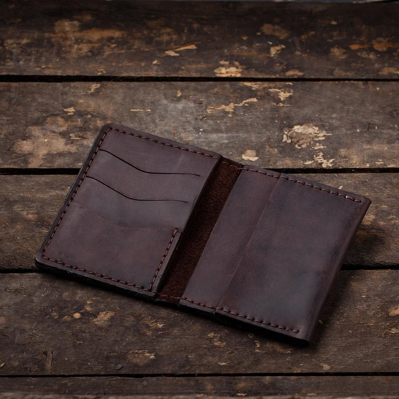This card holder is made of high quality 100% distressed leather, carefully hand cut and sewn. Stylish and simple, it has plenty compartments to organize all your bankcards and some folded bills. With this leather item, your everyday look will be perfect and all your closest stuff will always be nearby.