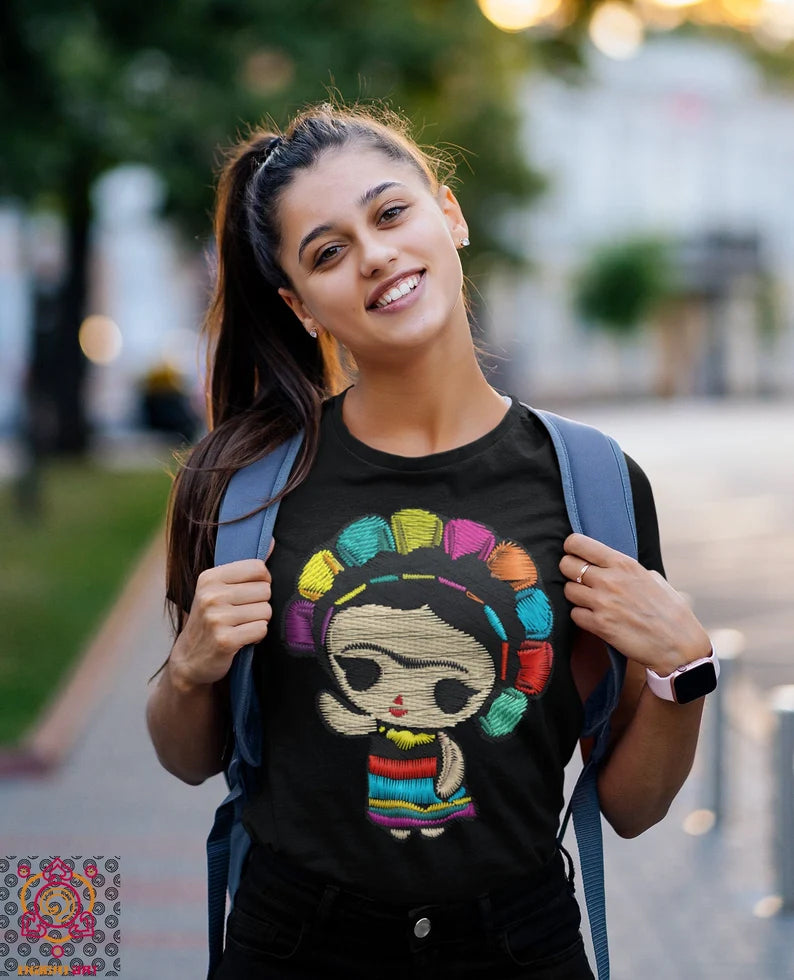 Regalo para mujer mexico shirt women mexican folk art doll folk art mexico latina shirts mexican original art