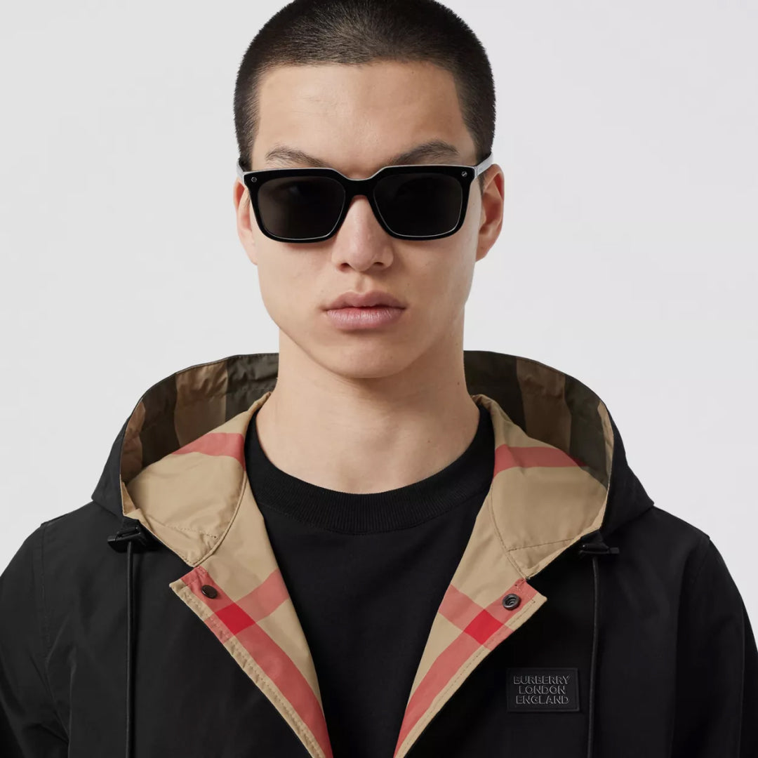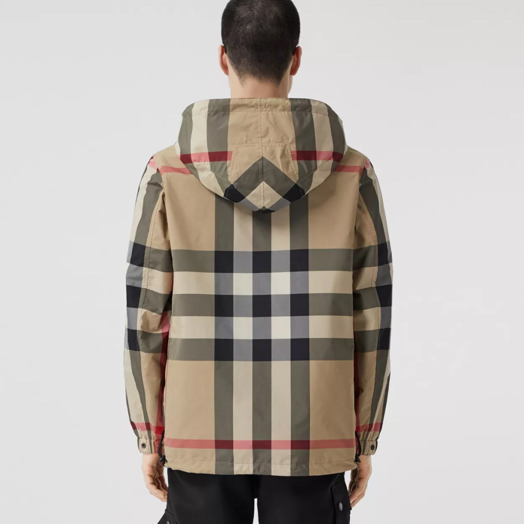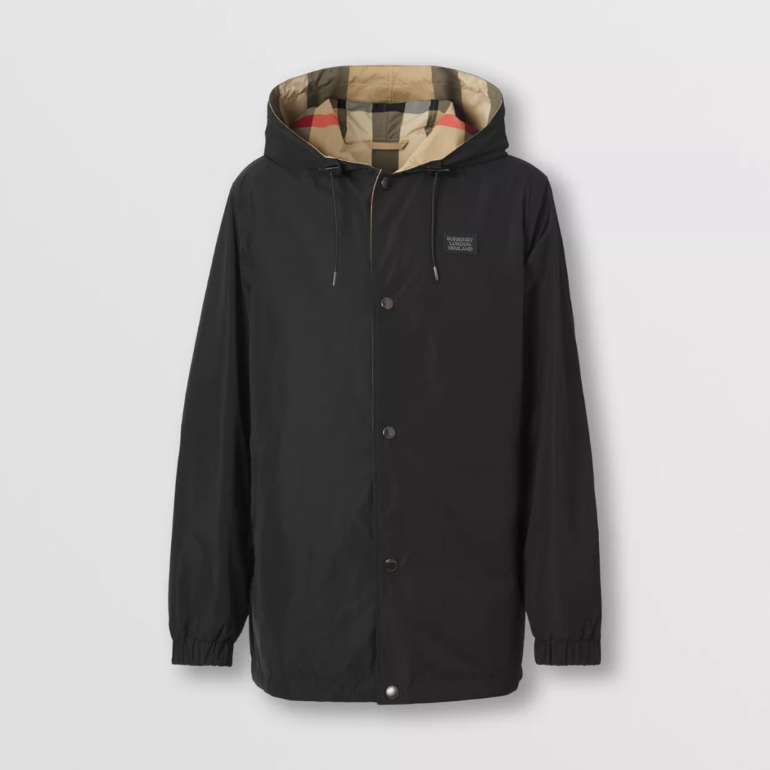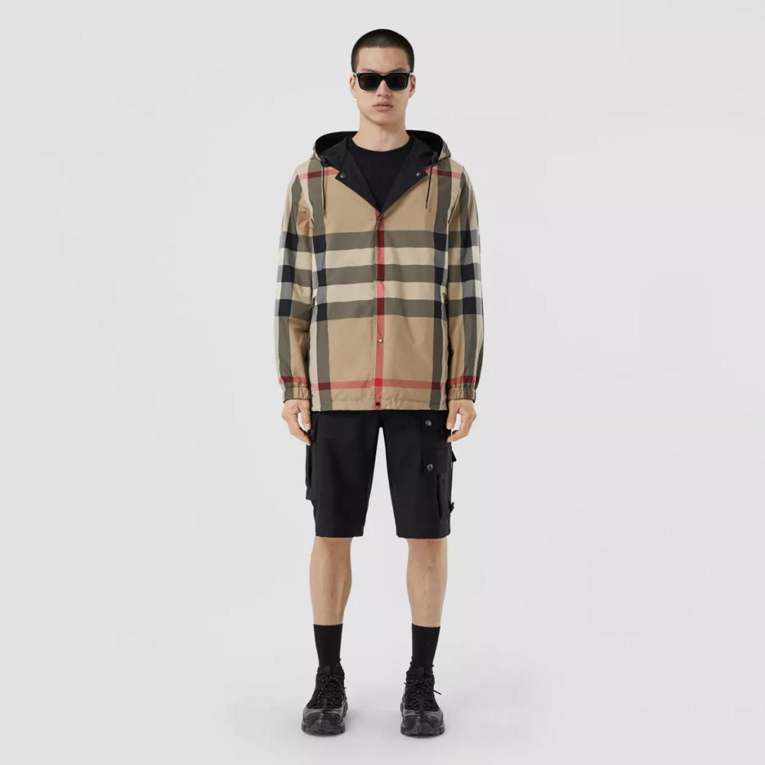 A lightweight check jacket styled with a drawcord hood and hem. The versatile design is cut to a regular fit and reverses to a solid colour tagged with our logo appliqué. The main material of this product is made with at least 70% recycled content.
