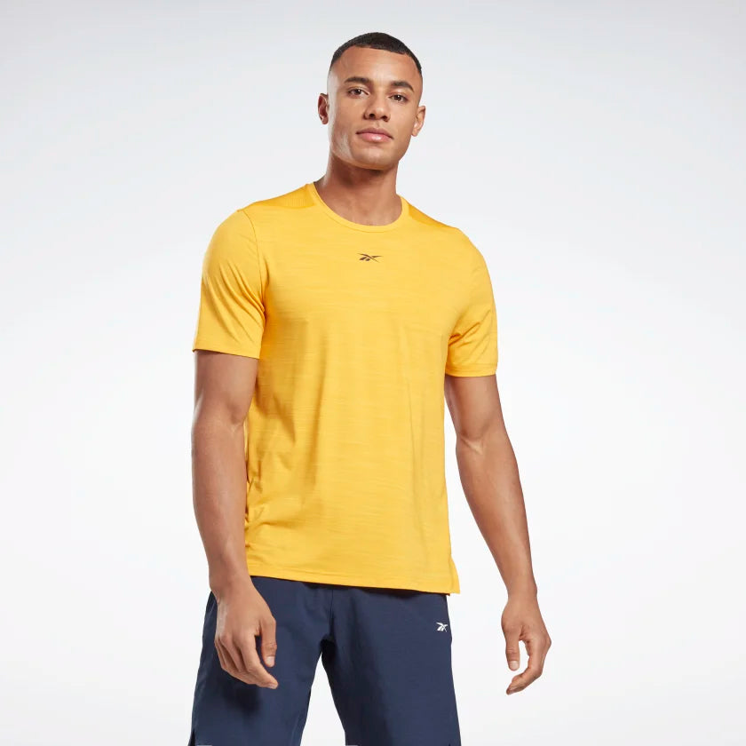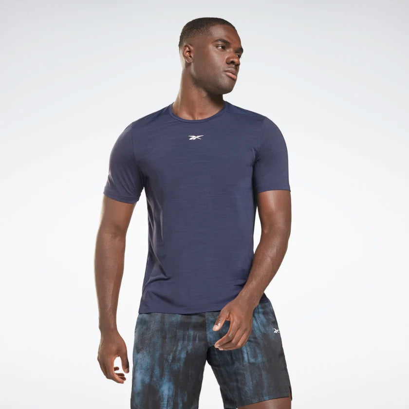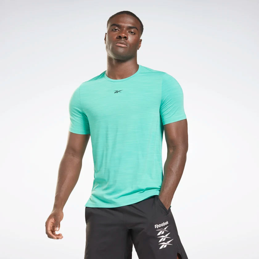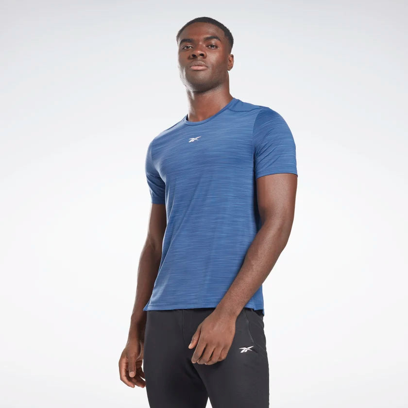 Tackle hills in spin class or row at max effort. This men's Reebok t-shirt is designed for tough workouts. Breathable ACTIVCHILL fabric and a mesh back give you that standing-in-front-of the-fan feeling.