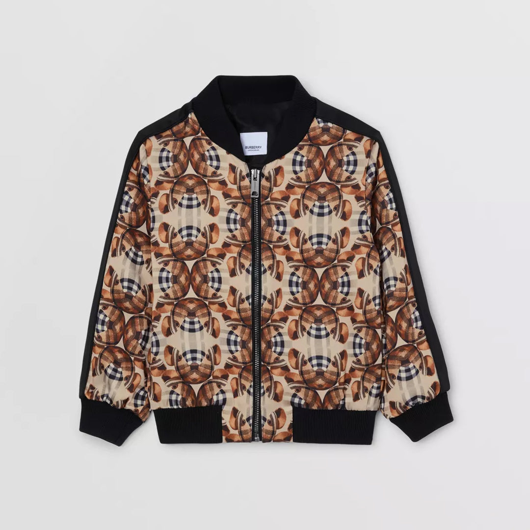 A lightweight bomber jacket cut from fluid satin twill. The style is highlighted with a kaleidoscopic print of our signature teddy and chunky rib-knit trims.