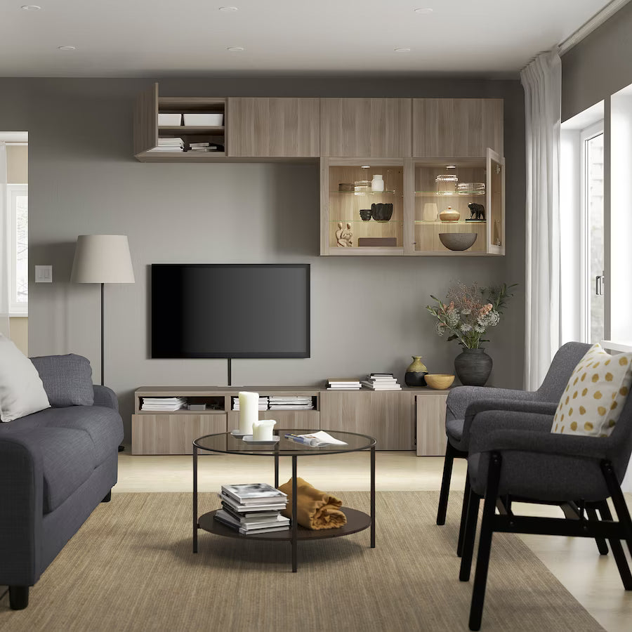 Комбінації пам’яті BESTÅ TV створюють місце для вашого телевізора та сховище для гаджетів, які потрібні для всіх дій навколо нього. Приховайте безлад і покажіть свої улюблені речі в одній чудовій комбінації!